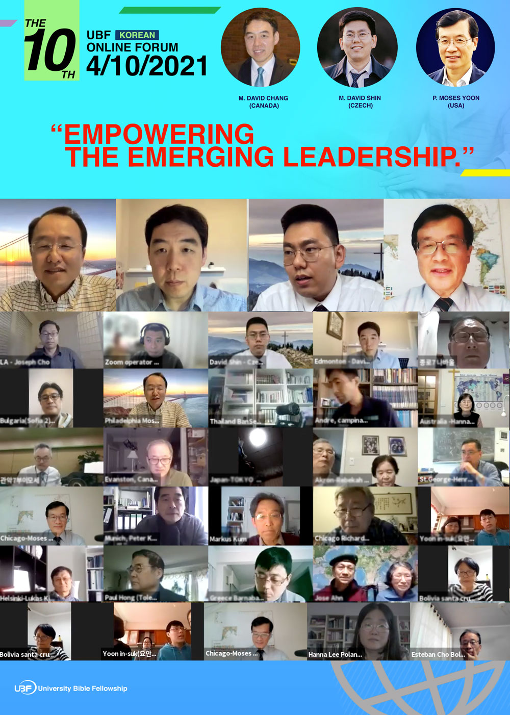 Presented via Zoom: The Zoom invitation will be sent out to registered emails prior to the meeting. If you want to join the 10th Korean Online Forum, please register on the HQ Website today (https://ubf.org/onlineforum/korean).